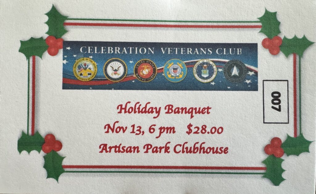 Please note that you must be a Veterans Club of Celebration member to purchase these tickets.